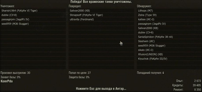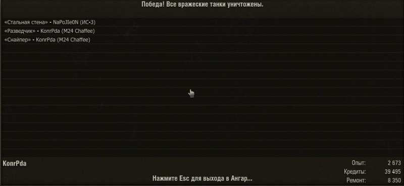 Достижения в бою: «Стальная cтена», «Бронебойщик», «Стрелок»