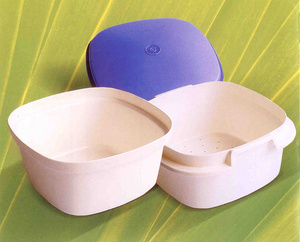 2. Поставьте чашу в сито Термосервирователя, залейте в контейнер кипящую воду до сита и закройте Термосервирователь крышкой.