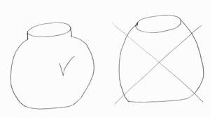 А вот есть небольшой ньюанс по форме горшка, точнее его горлышка. Оно должно быть как бы с "шейкой", тогда из горшочка меньше убегает. Попыталась нарисовать, как могла...