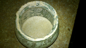 Только я не знаю что это за закваска, я сама ни разу с нуля не растила ее. Мне дали в баночке, я туда добавляю 1 раз 1 ч. л. сахара, и муки с водой трижды.