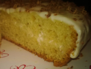 Смазала кремом середину и верх и посыпала тертым щоколадом..