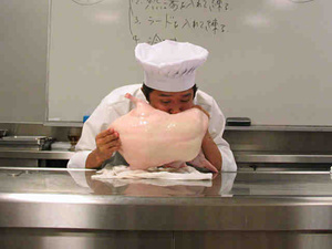 утку надо сначала надуть, чтоб корочка хрустящая была... я серьезно, это один из вариантов.