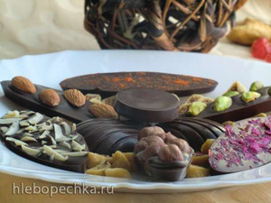 Ну вот мое маленько творчество, но это с глазури кондитерской делала, а что-то с горького шоколада 72%, плита была 2,5 кг.