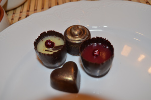 дома сложнее если нет кондиционера, температура в помещении должна быть 18-20"..... в холодильнике ни в коем случае хранить шоколад нельзя, только в прохладном месте....ничего с ним не будет и такая конфета спокойно до 2х недель храниться, видели у меня чуть выше со стаканчиками сердечко и круглая конфетка покрытые кандурином, внутри начинка с пюре из малины , ананаса, это корпусные конфеты.