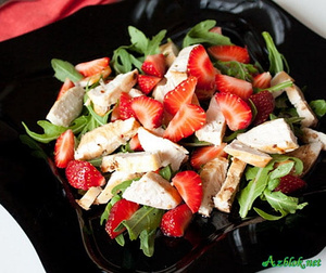 Салат из курицы с клубникой и рукколой