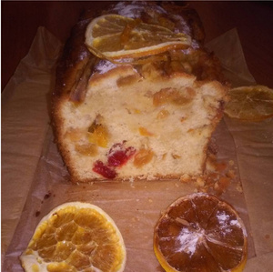 Он неплохой, конечно, и по-своему вкусен, но простоватый по сравнению с мандариновым, и вот с этим:фруктовый кекс