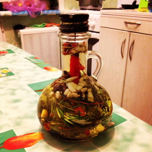 Тут главное - найти бутылочку позатейливее, чтобы кухню украсила. А уж если в ней будут плавать всякие красивости типа веточек розмарина и др. зелени, то и масло жалко будет использовать.