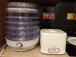 Купила позавчера сушилку Алтайского приборостроительного завода (Барнаул) Ротор, потребляемая мощность 520 Вт. "Играть" еще не начала, наверно первым пробным шаром будет дыня. Кто сушил, подскажите - какими кусками резать?