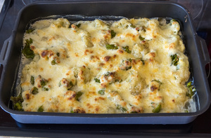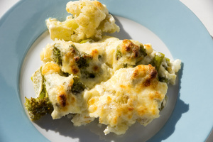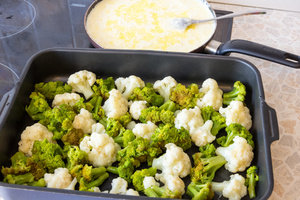 Цветная капуста и брокколи, запеченные под сливочным соусом