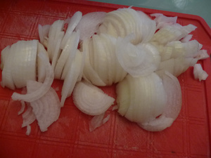 редька, мясо(вчера варила индейку (обычно свинину беру)- она и быстрее варится и кусочек небольшой оставался, как раз для такого дела), лук поджарить, мы любим чтоб много было, он какую-то легкую сладость придает, и еще морковку тоже обжарить. Все перемешать- хорошо ли плохо ли, но.... с майонезом, с ним вкуснее!