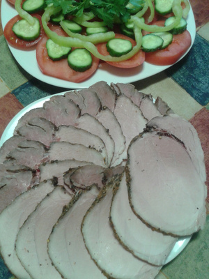 Мое почтение, такая хозяюшка дорогого стоит...Буженина была предыдущим ужином, утром остатки в холодном виде отлично подошли для бутербродов. Сегодня на ужин творожная запеканка с изюмом