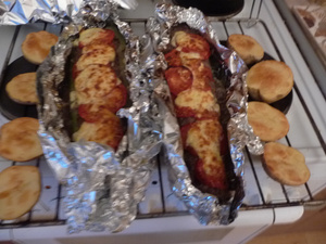 Кабачок)))- это ОСЕНЬ!!!. разрезала вдоль, фарш сверху (по усмотрению рецепт).. помидоры сверху, сметано- майонезный соус и сыр.. но самое главное пекла в духовке на решётке... рядом положила картоху прям в кожуре- порезанная по вдоль (дольки между собой растереть солью.. как огурец) БЕЗ МАсЛо!!! Когда картошку достанешь, у нёё верх можно подрезать и добавить сливочного масло. Под корочку для вкуса ....