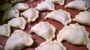 у меня все таки сегодня пельмени (фарш жирная баранина+говядина+лук и естественно соль+красный перец+черный перец)....вкусные, жирненькие (я боялась что будут суховаты так как фарш водой не разводила) - с лепкой "выпендрилась", сделала их как вареники, нервы себе успокоила..ВСё...я сегодня опять добрая))