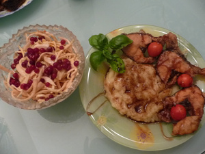 Ппс: что можно с печенкой сделать индо/куринной? Я делаю салат с теплой, обжаренной+зелень, орешки, бальзамик. Просто тушу. Вот в запеканку пустила. Торт делать лень. Оладьи еще редко.