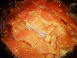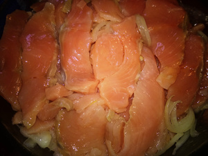 Горбушу, лучше замороженную (меньше разваливается) разделать на кости, шкуру и филе. Кости на уху, шкуру собакам, а филе порезать пластиками. В холодной воде растворить соль (примерно 5 ст.ложек на поллитра воды) что бы всплывала свежая картофелина. Заливаем на 8-10 минут, сливаем воду, я добавила еще чайную ложку сахара, перемешиваем с маслом в идеале и с луком, но я почему то замоченную в луке рыбу любить перестала..Лучше достать кусочек свежезасоленный, да на черный хлебушек, смазанный совсем тонюсеньким слоем масла...а уж сверху тооооненький полукружочек лука...да запотевшую стопочку..да за компанию...ммммм