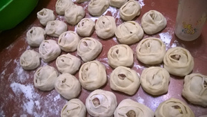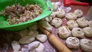 А я вчера на ужин наделала самсы: лук+баранина кубиками+картофель кубиками+утилизировала остатки капусты (кубиками)+перец красный черный+кориандр и черный перец в зернах (свежепереломолтые)+соль..осталось много фарша...добавила курдючного сала и лука и навертела мантов...