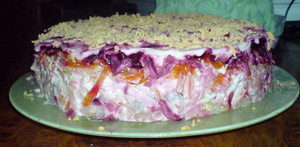 ой, ну я не знаю..я конечно люблю молоку на кусочек хлебушка положить да с лучком и перцем черным посыпать, но в салат..я шубу тоже делаю многоэтажную, редко когда в глубокой чашке и набор слоев повторяю 2-3 раза..последние разы очень редко получается купить удачную селедку, а самой не всегда получается солить и я, прежде чем ее в салат положить - засыпаю ее порезанным луком и немного черного перца - она маринуется, потом туда же добавляю тертые яйца и перемешиваю и получается один смешанный слой и его проще смазывать майонезом, чем, например, наносить его на лук или просто яйцо..раз добавила икру селедочную - никто на хлебушек себе не положил и я решила утилизировать ее всалат вместе с селедкой - че попало, на этом мои эксперименты закончились: картошка, морковь, лук + яйцо + селедка, свекла и так 2-3 раза, на последний слой после селедки картошка+морковка потом сверху свекла и могу еще украсить на майонез уже тертым желтком...никаких яблок, желатина с майонезом и прочей фигни