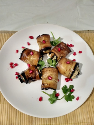 В пятницу на ужин Бадриджани - рулетики из баклажан, с пастой из грецкого ореха, чеснока, лука и специй.