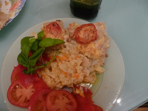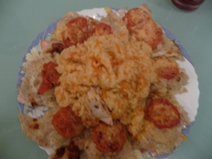 куринно овощные котлеты, рубленная грудка, кабачок!!! картошка, лук тёртый..яйцо сырое.-но фарш с овощами даёт много сока- вместо муки добавила крахмал. - и рисовая каша на гарнир...с жареной морковью и зирой- готовить сразу вместе. (морковь пережарить, и с рисом в воду)- воды добавлять- 2 пальца сверху.. и на медленный огонь. рис получился не очень рассыпчатым- но и не каша!!!