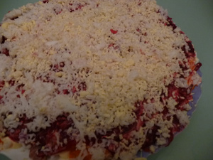 Меня тут раздразнили на селёдку под шубой, я её вчера сделала.. И гречка с гуляшом из говядины. на ужин..Скажу сразу шубу- я делаю тоненькой, не люблю в виде высокого торта. Селёдка была малосольной. первый слой всегда делаю картошку, на неё уже селёдка с луком, каждый слой промазан. Но Я ГЕНИЙ!!! - от двух селёдок остались 2 молоки и 2 икорочки., я залила их маслом подсолнечным, так что- бы они утонули., поставила в морозилку не надолго что-бы масло охладилось.. а потом в ёмкости взбила миксером (по принципу домашнего майонеза из подсолнечного масла) и вот что получилось!!!