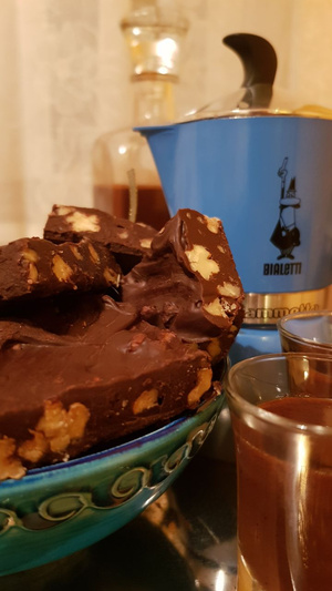 2. Пока тает шоколад, порубить орехи. Я люблю, чтобы орехи были крупно и ярко чувствовались, поэтому совсем немного измельчила самые крупные орехи.