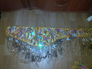 Есть костюм для восточного танца,синий с красивым золотом,длинное платье с разрезом и глубоким декольте,длинный рукав с петелькой на руку,с пришитыми крыльями от локтя,к нему идет бюст,обшитый бархатом,пояс с бисером и висюльками.Костюм новый,шила себе,но пришлось с танцами расстаться(размер 50-54 ,может и на больший подойдет.Бюстгалтер бесшовный,чашка 3-ка полновесная.Если кого заинтересует,пишите в личку,сделаю фото .