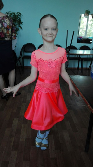На фото цвет платья при вспышке,при дневном освещении-оранжевый. Ткань Кризанн,стразы-Сваровски (все на месте). Динамичная юбочка,в подарок-цветок для прически со стразами. Очень хорошее состояние. У девочки на фото рост 123, ОГ 60, ОТ 53,ОБ 64 (платье впритык).Цена-6000 рублей,возможен разумный торг.