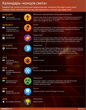 Вот просто интересно какие они завтра отмазы лепить будут... сам Кемпинг , на случай, если его пророчество не сбудется, в последней воскресной проповеди сказал: "Если по прошествии 2011 года этот мир все еще будет существовать, мы поймем, что нам еще многое стоит почерпнуть из Библии".