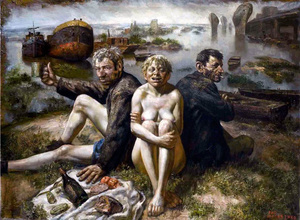 "Завтрак на траве" Эдуарда Мане был написан в 1863 г. И вызвал скандал, как известно. Две женщины (голые или почти) и двое мужчин (пока одетых) отдыхают на природе. Утром причем. Автора обвинили в аморалке, и были правы в общем. Зато сюжет "Завтрака" стал популярен у художников всего мира. За истекшие 150 лет были сделаны десятки римейков картины в разных странах. С национальным колоритом, так сказать. В том числе и в современной России.