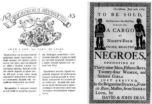 Понимаете, я не хочу, что бы получилось опять, как при "высокой духовности" и всеобщем воцерковлении - вот объявления в газету "Московские Ведомости", 1800 г. о продаже людей с 14 ти лет, вперемежку с лошадьми (и рядом - о продаже негров в порту Чарльзтаун в британской колонии Южная Каролина):