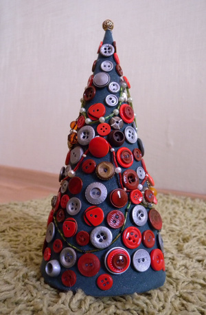 А это моя новогодняя елка, сделана из всего ненужного - крашеных пуговиц и различных бусин