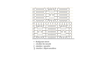 Примерно такая схемка получается. В "паучках" м.б. и 4 возд.п. и боковые столбики м.б. с 3 накидами, по месту надо смотреть. Наваяла сама, неохота искать, все равно с журнала перерисовывать.