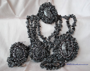 Комплект Ольга (Снежный барс). Материал - снежный обсидиан, бисер.