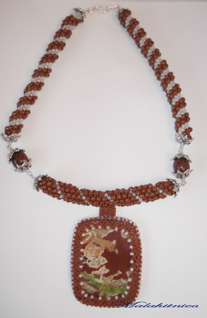 Не знаю как назвать, пусть будет "Картинка". Материала - пейзажная яшма, махагоновый обсидиан, бисер Toho, металлическая фурнитура.