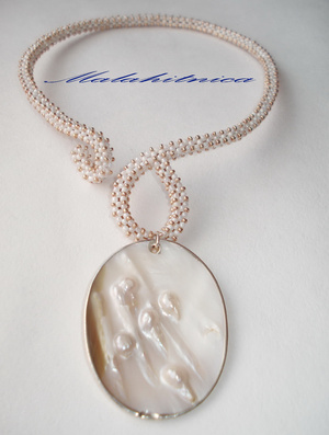 Ну что, поднимем тему? Ожерелье "Лаконичность". Материал - чешский бисер, перламутровый медальон, проволока (каркас).