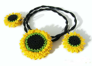 Заколка. Схемы подсолнухов нет. Если надо, могу объяснить как плетутся.