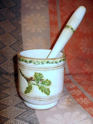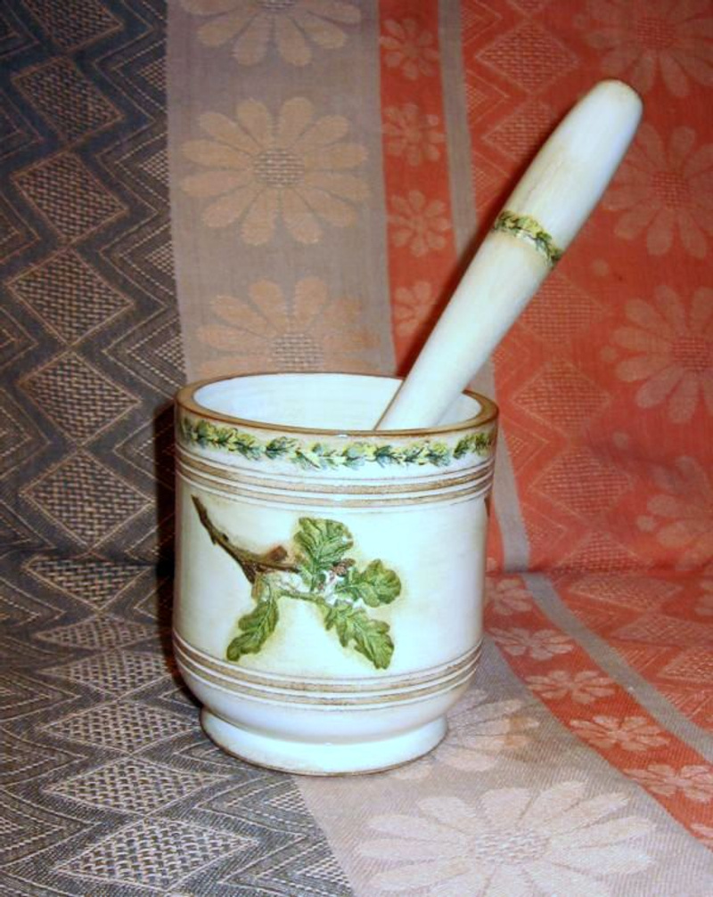 Набор из досочки и ступки может стать маленькой частью красивой и уютной кухни.