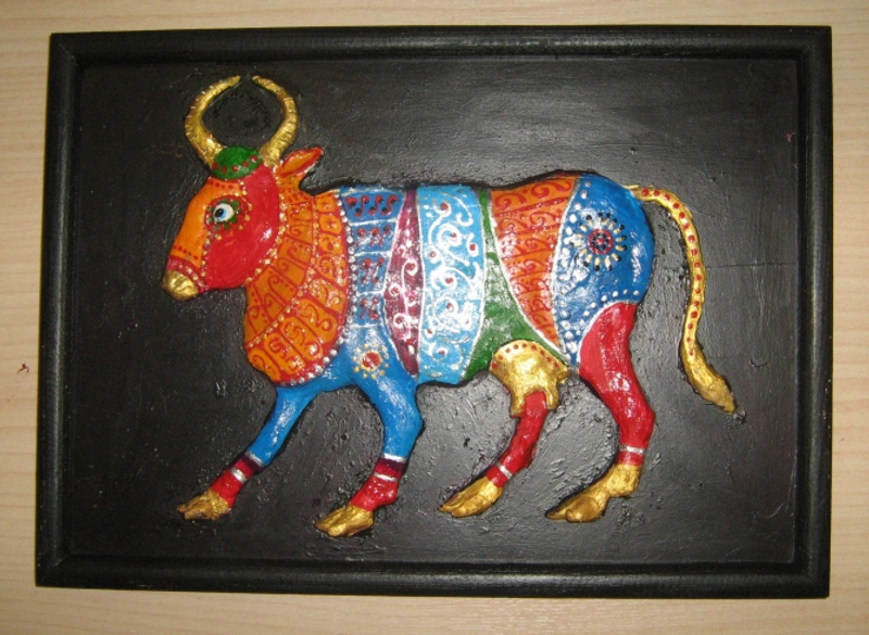 Корова в индийской и во многих других культурах имеет большое символическое значение. В индии она - священное животное, символизирующиее землю, плодовитость и изобилие. Корова - это символ благочестивой жизни, спокойствия, уравновещенности, принятия мудрых и взвешенных решений во всех сферах жизни. Символ коровы в доме дает "пищу" и "воду", способствует накоплению богатства и почета. Тот, кого любит корова, становится мудрым, сильным и живет в достатке, не зная бед и огорчений.