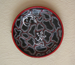 В декоре я использовала 3 цвета - черный, белый и красный. Доминирующий цвет (цвет фона) черный. Такие цвета делают этот предмет интерьера абсолютно универсальным для любого интерьера, не зависимо от цвета обоев, мебели и текстиля. Работа покрыта глянцевым немецким лаком, придающим очень благородный блеск и стойкость.