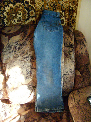 4. голубые широкие женские джинсы, размер по попе прим. на 42-44. (на 46 будут точно малы) - можно носить, а можно пустить на рукоделье