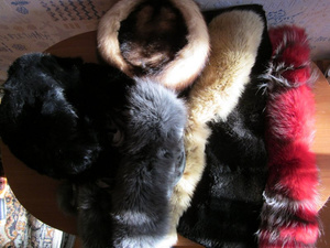 Кусочки меха разные :ханорик, кролик,овчина... ( две шапки и 4 воротника)
