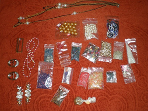 Девочки, нашла вот такие запасы. Как то не пошло у меня рукоделие. Некоторый бисер какой-то "не новый", крупный "жемчуг"- бусы распущенные, еще какие-то пряжки и застежки. Для начинающих рукодельниц думаю пойдет, или для ребятни
