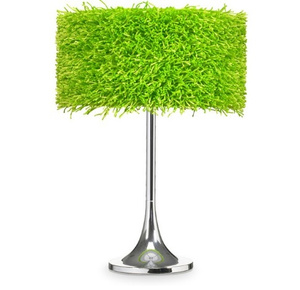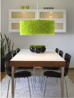 Идея такая: купить три вазы зеленого цвета, просверлить дырки, вставить патрон с лампой и подвесит.