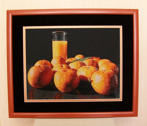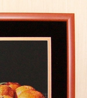 Оформление: черный металлический кант по внутреннему краю, темно-вишневое бархатное паспарту, темно-коричневый багет. Стоимость 1060 р, в Плинии старшем заказывала, салон Вышиваюшка.