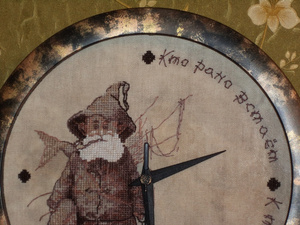 Я это просто на глаз прошивала в 2 нити через одну нитку ткани, честно говоря, даже не очень соотносясь со схемой, ибо во главе стола было месторасположение стрелок. Не знаю уж, ответила ли я сейчас на Ваш вопрос...Показываю свою новую работу.