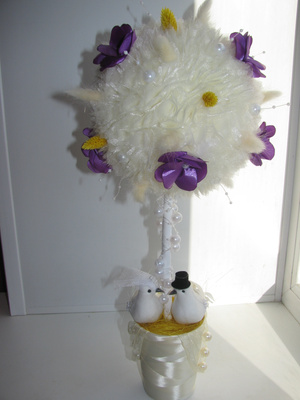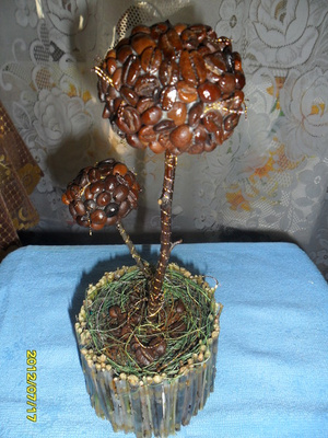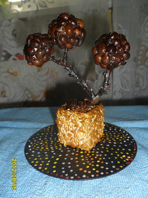 Увлеклась совершенно случайно, была на свадьбе, а там столы были украшены такими деревцами (я потом такое дерево повторила, зеленое с яблочками), ну мне и понравилось ,я давай сама придумывать и с каждым разом идеи появляются все новые, скоро еще два сделаю, по времени одно дерево два дня делается с утра и до вечера