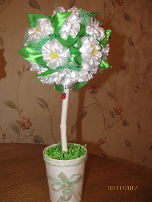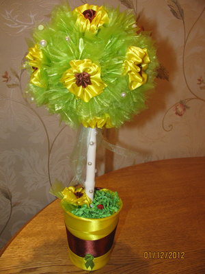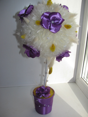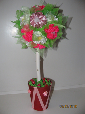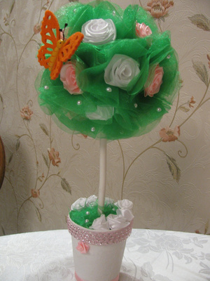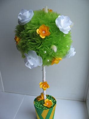 Делала по этому МК: http://tcmart.ru/article/cvetochnie-shari/. Там называется "цветочное деревце", но судя по Вагим фотографиям оно чем то смахивает на топиарий)))