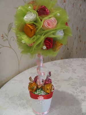 Блин так классно!, я сама люблю заниматься всякими видами рукоделия и потом преподносить близким в подарок))) тоже хотела научиться делать топиарий!! Подскажите а что вы используете за основу деревца?(круглую часть)