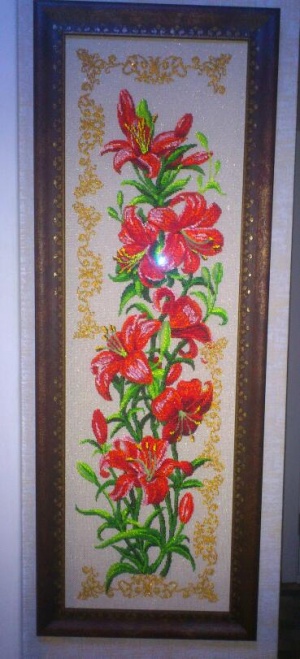 Добрый день. Вот моя картина, вышитая бисером, хочу продать. Размер 36*106, деревянная рамка, антибликовое стекло.