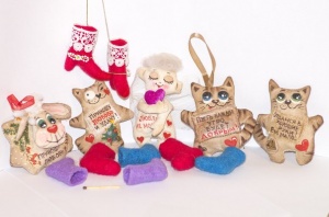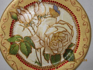 Здравствуйте. Тарелочки, шкатулки, техника декупаж. Игрушки, связанные крючком. Свадебные аксессуары, бокалы и проч. Вышитые открытки.
